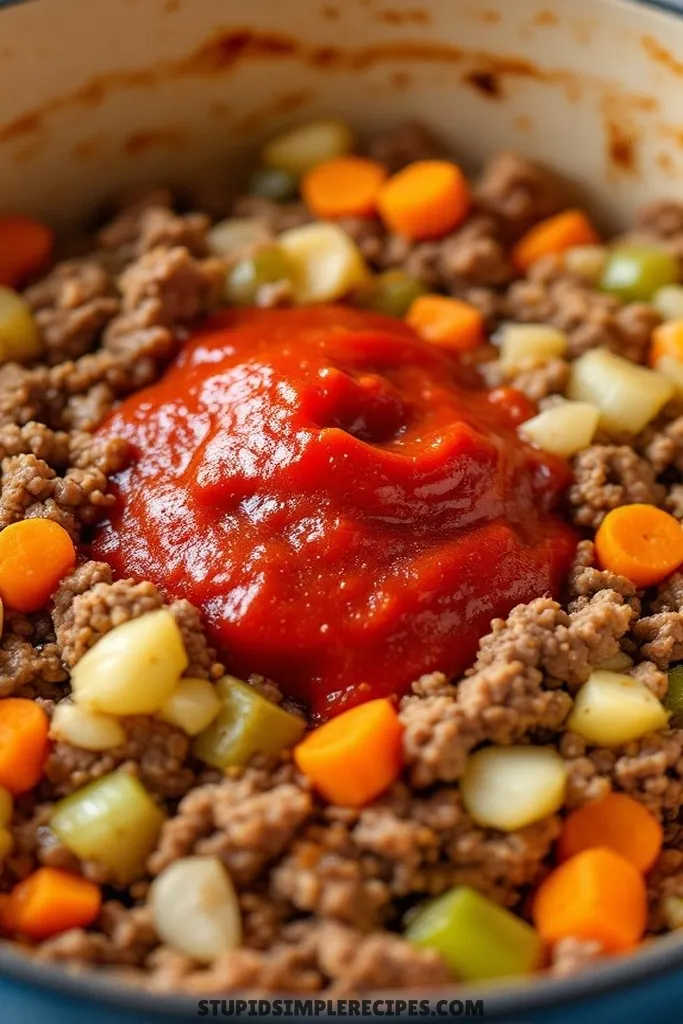 • Add the tomato paste and stir it around for about a minute. It’ll coat everything and might stick to the bottom a bit – that’s good! This helps develop a deeper flavor.