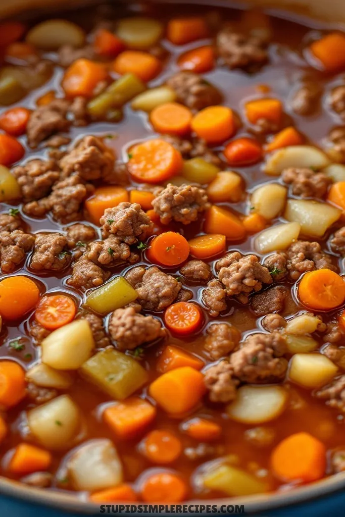 The small macaroni soaks up the beefy broth while cooking, and the tomatoes give it a rich base that ties everything together. I make this most in winter, but it’s good anytime you want a one-pot meal that’ll feed a crowd or give you leftovers. The ingredients are cheap and it’s pretty forgiving – if you’re running low on carrots or want to throw in extra celery, it’ll still turn out fine. Perfect for busy weeknights when you want something warm and satisfying.