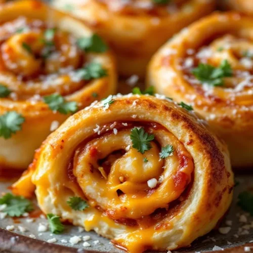 These BBQ chicken pizza rolls combine everything great about pizza and handheld snacks, but they’re way easier to make than you’d think. The dough gets rolled up with shredded chicken, BBQ sauce, and plenty of cheese, then sliced into individual portions that bake up golden and gooey.