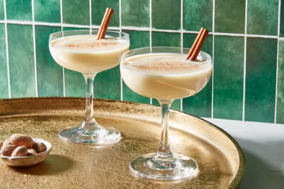 Classic eggnog transforms into an elegant martini with vodka or rum and a sprinkle of nutmeg on top. This cocktail is rich, creamy, and captures all the holiday flavors of traditional eggnog in a more sophisticated presentation. It’s stronger than regular eggnog since it’s not diluted with as much dairy, making it perfect for adults who want eggnog flavor without the heaviness.