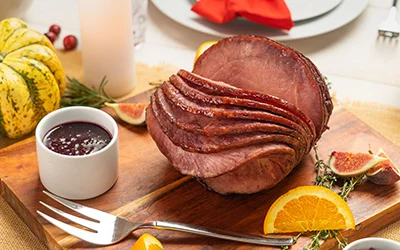 This show-stopping centerpiece combines succulent ham with a luxurious sweet-savory glaze. Rich port wine and tender figs create a glossy coating that caramelizes beautifully during roasting, while warm spices add festive depth.