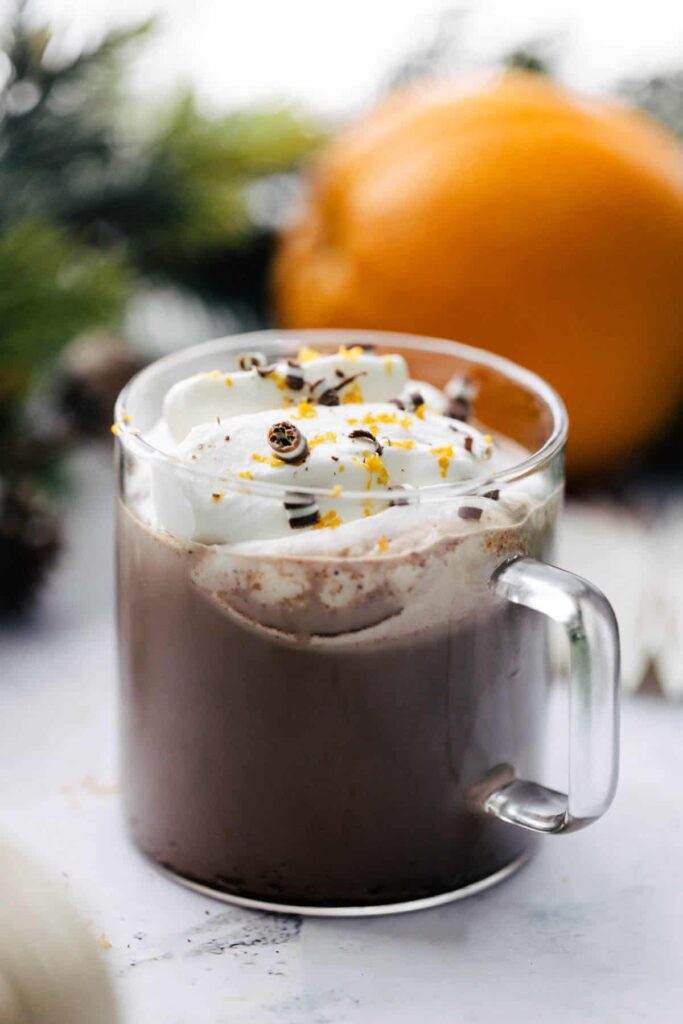 Bright orange zest and warm cinnamon create a sophisticated flavor combination that’s both comforting and elegant. The orange adds brightness that cuts through rich chocolate beautifully, while cinnamon provides warmth and depth. This tastes like chocolate orange candy in liquid form, with the added comfort of warm spices.