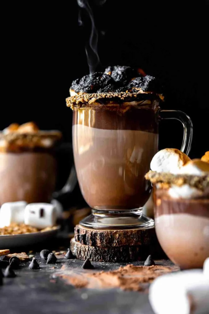 All the beloved flavors of campfire s’mores come together in one incredible drink – chocolate, marshmallow, and graham cracker flavors in liquid form. Rich chocolate provides the base, while marshmallow fluff or mini marshmallows add sweetness and that distinctive s’mores taste. Crushed graham crackers can be stirred in or used as garnish.