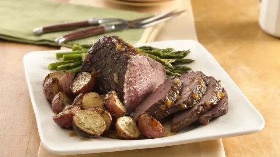 The bright citrus notes from the orange zest really brighten up this roast, making it feel fresh and festive. Combined with earthy thyme, it creates a flavor profile that’s both sophisticated and approachable. Sirloin roast is a great middle-ground option – more affordable than prime cuts but still tender and flavorful when cooked properly. The orange adds a subtle sweetness that pairs beautifully with traditional holiday sides. It’s also relatively quick to prepare, making it perfect for hosts who want maximum flavor with minimal fuss and stress.