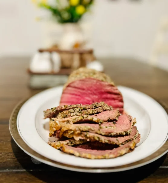 Don’t let the budget-friendly price fool you – this cut can be absolutely delicious when treated right. The herb crust adds tons of flavor and helps create a nice texture contrast. Eye of round is lean, so it’s perfect for health-conscious guests, and the herbs make it feel fancy despite being economical. The key is not overcooking it, as it can get tough quickly. When done properly, it’s tender, flavorful, and will stretch your holiday budget while still delivering an impressive centerpiece that nobody will guess was affordable.