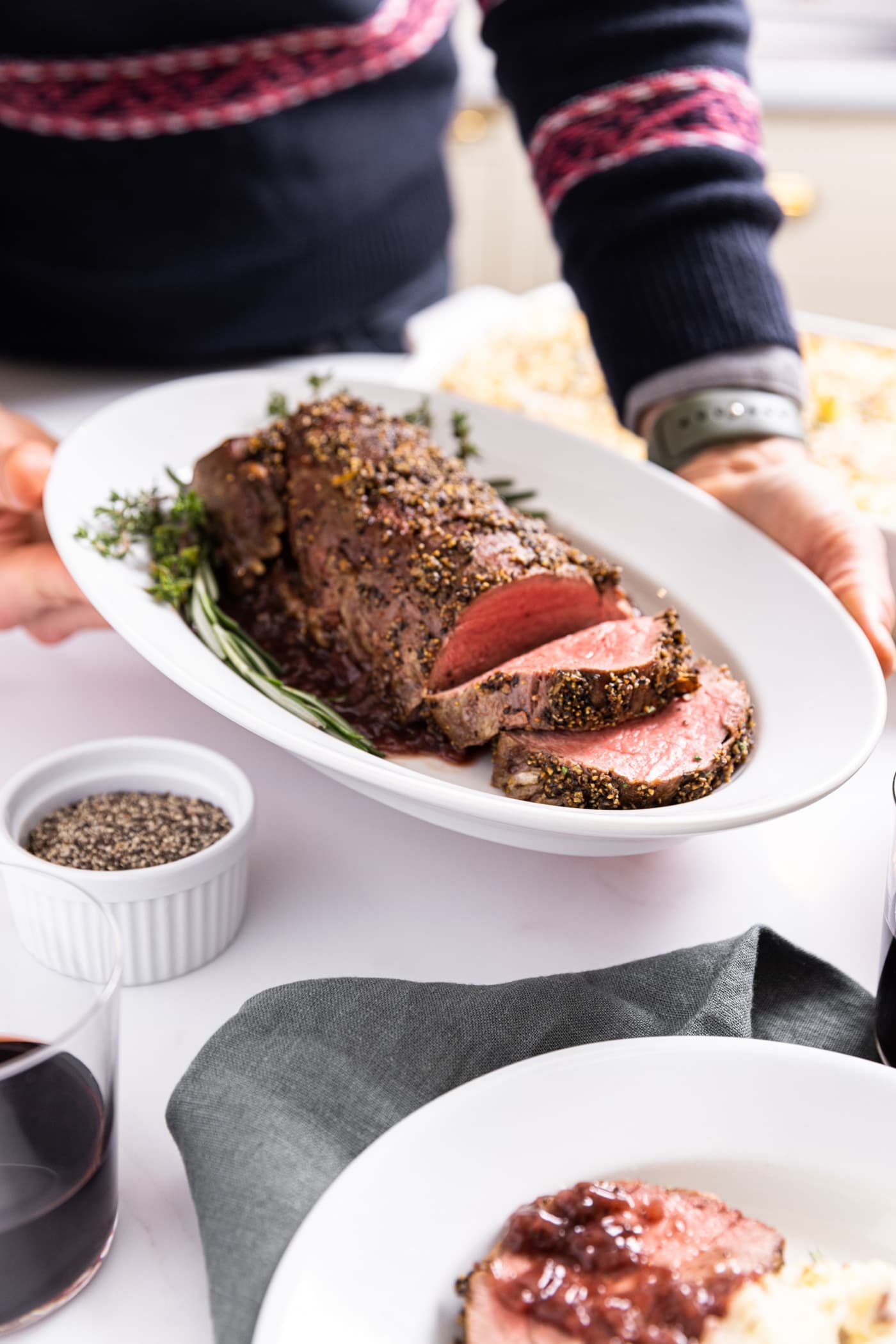 For those who love a little heat with their meat, this peppercorn crust delivers a spicy kick that’s balanced and sophisticated. The coarse pepper creates great texture while adding bold flavor that complements the tenderloin’s natural richness. Tenderloin cooks quickly and evenly, making this perfect for hosts who want an impressive dish without spending all day in the kitchen. The presentation is elegant and restaurant-quality, guaranteed to impress even the most discerning guests. Just make sure you warn people about the pepper level beforehand.