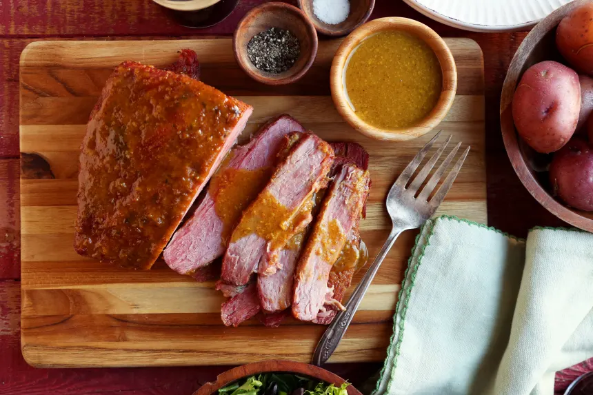 The tangy mustard and sweet brown sugar create an incredible sweet-and-savory balance that’s absolutely irresistible. The crust caramelizes during cooking, forming a beautiful golden-brown exterior with amazing flavor depth. It’s surprisingly easy to prepare – just slather on the mixture and roast. This combination works well with various cuts, making it versatile for different budgets. The flavors are bold enough to stand up to rich holiday sides but not so overwhelming that they compete with other dishes. It’s a crowd-pleaser that always gets rave reviews.