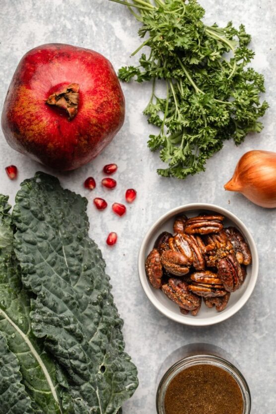 Hearty kale stands up beautifully to bold winter flavors like tart pomegranate seeds and buttery toasted pecans. The kale stays crisp even when dressed ahead of time, making this perfect for busy holiday prep. The jewel-like pomegranate seeds add gorgeous pops of color and sweetness that balance the slightly bitter greens.