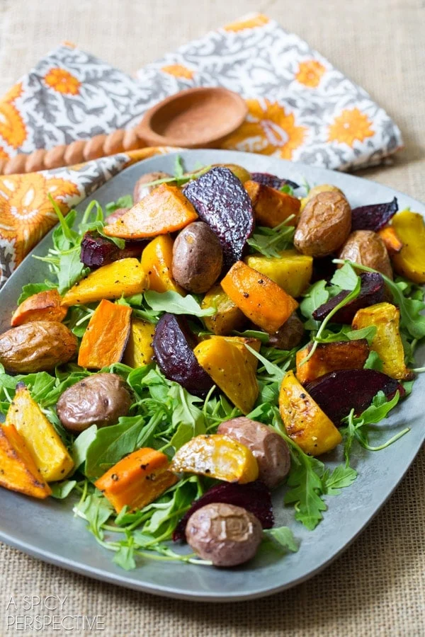 The earthy sweetness of root vegetables feels very appropriate for winter holidays. It’s more substantial than most salads, almost like a side dish and salad combined. The roasting brings out incredible natural sweetness in the vegetables that might surprise people.