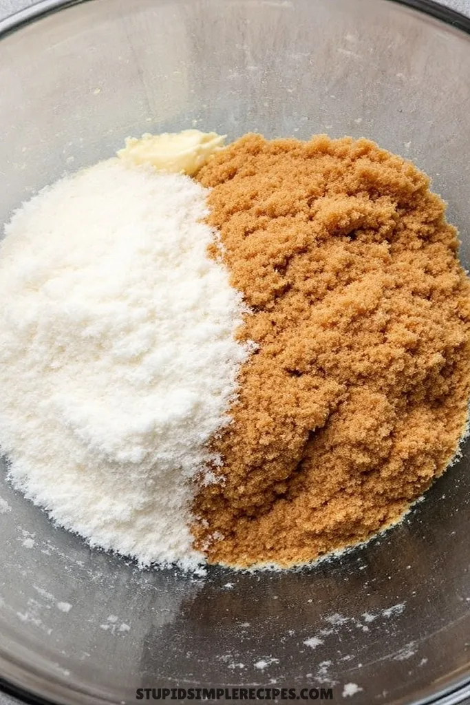 4. In a large bowl (or your stand mixer if you’re using one), beat the softened butter for about 30 seconds until it’s creamy. Add both sugars and beat until the mixture is light and fluffy – about 2-3 minutes. You’ll see the color become noticeably lighter when it’s ready.