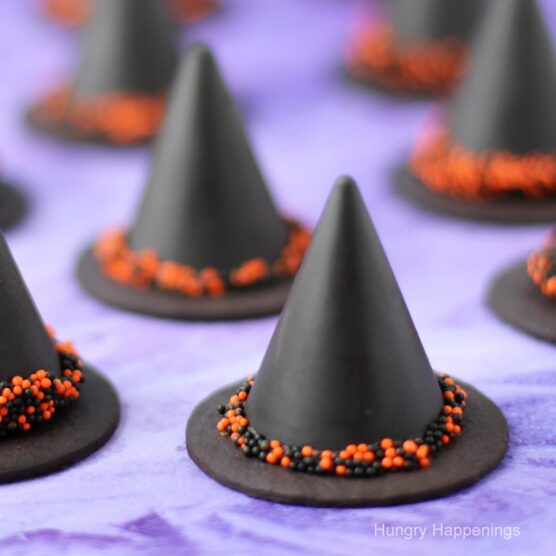 Mysteriously and deliciously sweet, this magical fudge gets its color from food coloring and its enchanting flavor from a Nutella. The unusual color immediately catches the eye and sparks curiosity, while the familiar sweet flavor satisfies everyone’s taste buds. It’s very simple to make – essentially basic fudge with coloring and flavoring added. You can shape it into witch hat forms or cut into squares, and either way it adds a magical touch to your Halloween dessert spread. Find the recipe here.