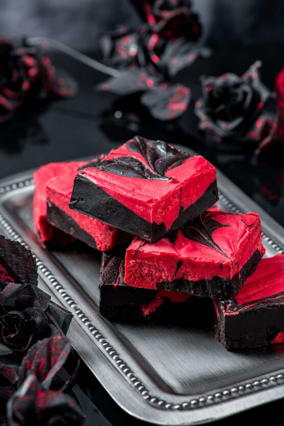 Dramatically red and intensely flavored, this fudge captures the essence of red and black in a rich, dense confection that’s perfect for Halloween’s gothic themes. The subtle chocolate and vanilla notes create a complex flavor that’s both familiar and intriguing, while the deep red color provides serious visual impact. It’s moderately easy to make, though getting the color just right might take some adjustment. The sophisticated flavor and dramatic appearance make it ideal for adult Halloween parties or romantic spooky date nights. Find the recipe here.