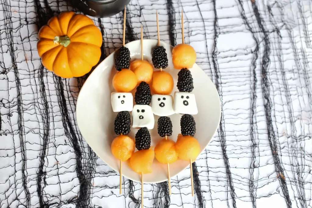 Halloween Fruit Kabobs with Orange and Black Fruits