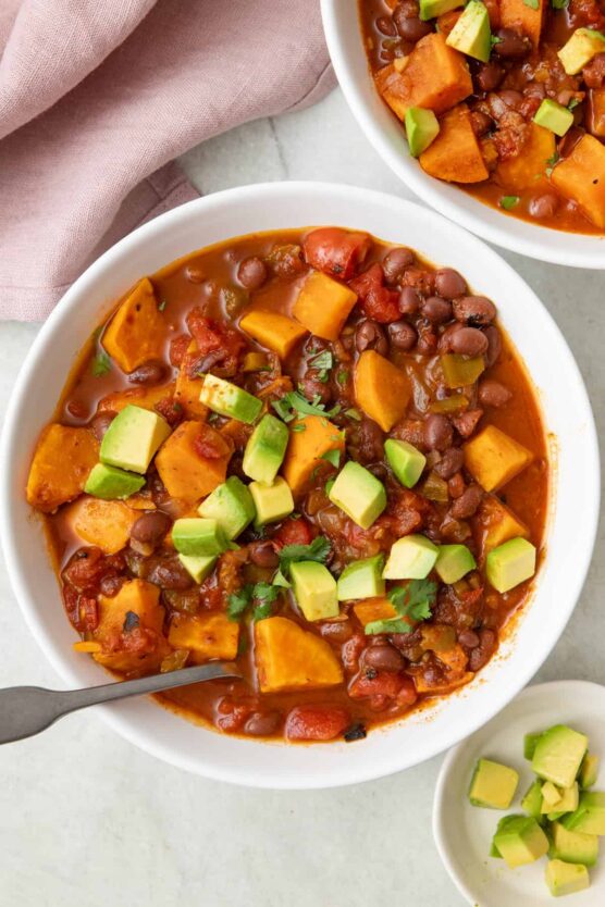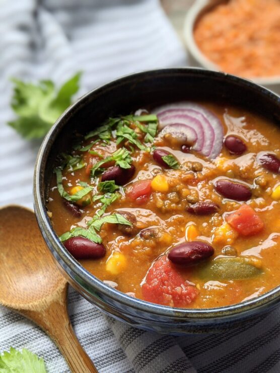 Red lentils break down during cooking to create a naturally thick, protein-rich chili with a beautiful orange color. This vegetarian option is incredibly budget-friendly and cooks much faster than traditional bean-based chilis. The lentils absorb all the spice flavors beautifully, creating a satisfying meal that doesn’t feel like you’re missing anything. It’s also naturally gluten-free and packed with fiber and plant-based protein. Find the recipe here.