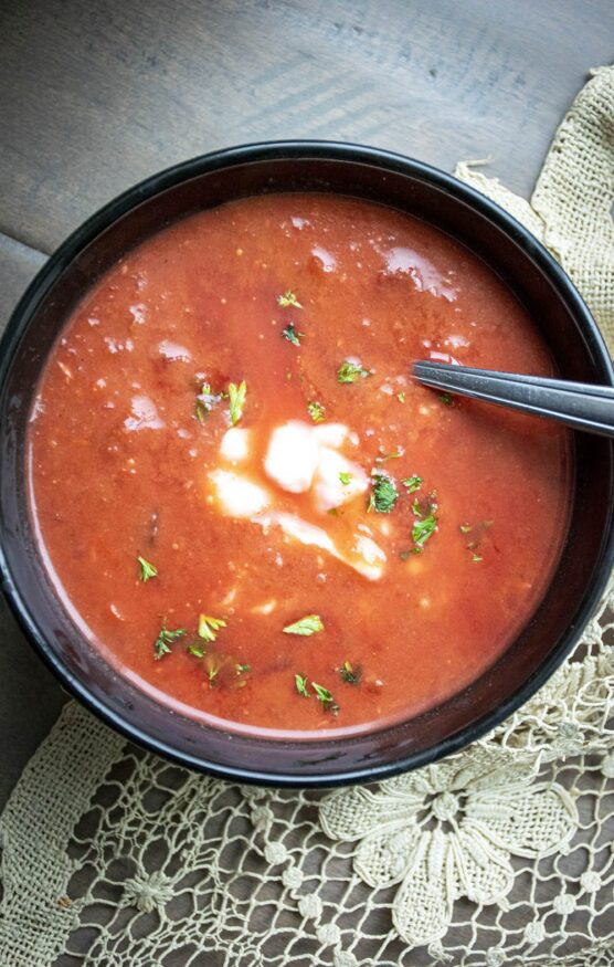 This dramatic chili gets its deep red color from a combination of tomatoes, red bell peppers, and a secret ingredient – beets! The result is a rich, complex flavor that’s both familiar and intriguingly different. Ground beef provides plenty of protein and substance, while the vegetables add natural sweetness. It looks appropriately spooky for Halloween but tastes sophisticated enough for any dinner party throughout the season. Find the recipe here.