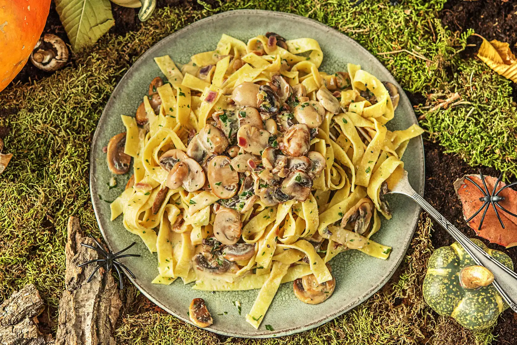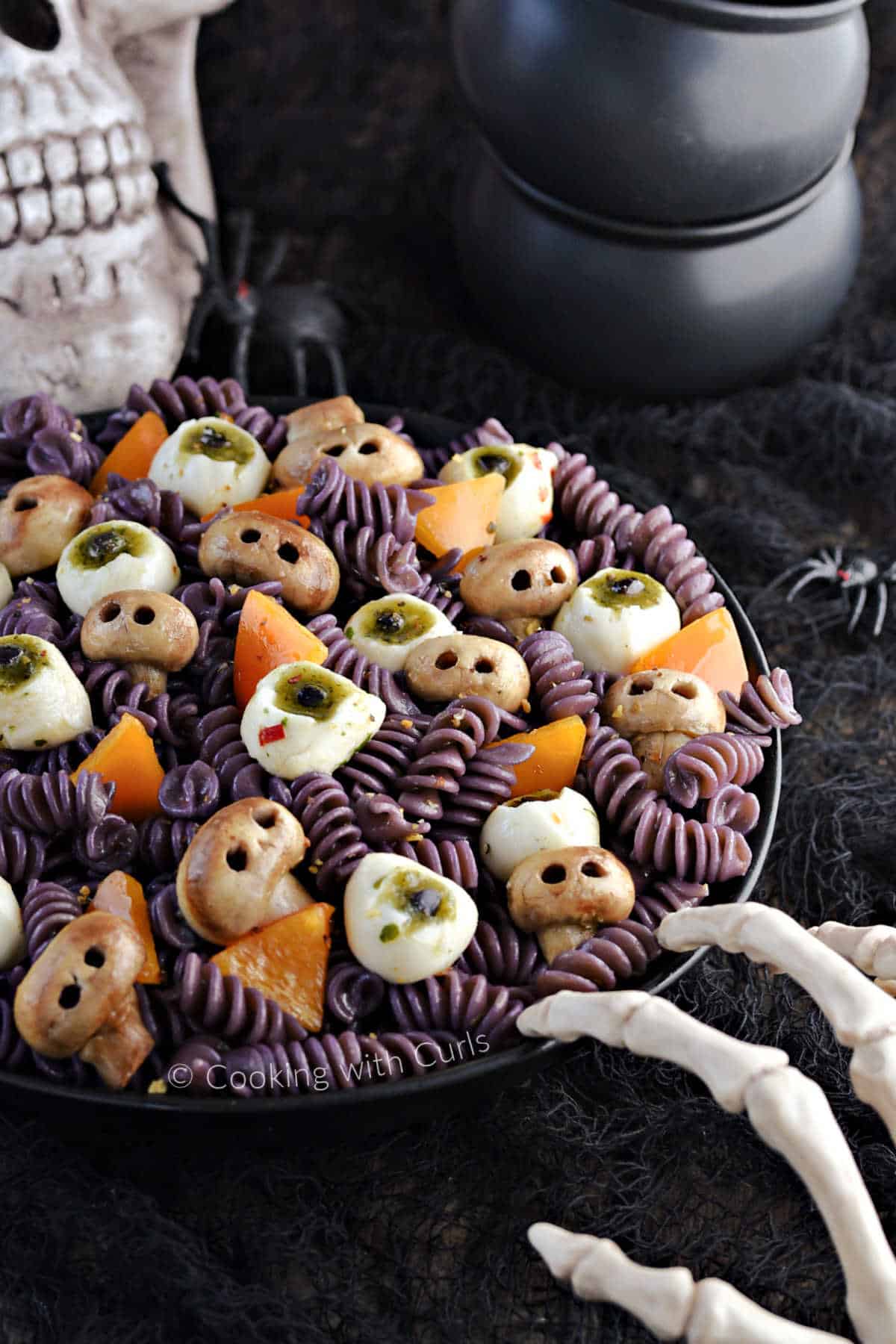 Creepy Crawly Pasta with Black Olives and Nose Mushroom