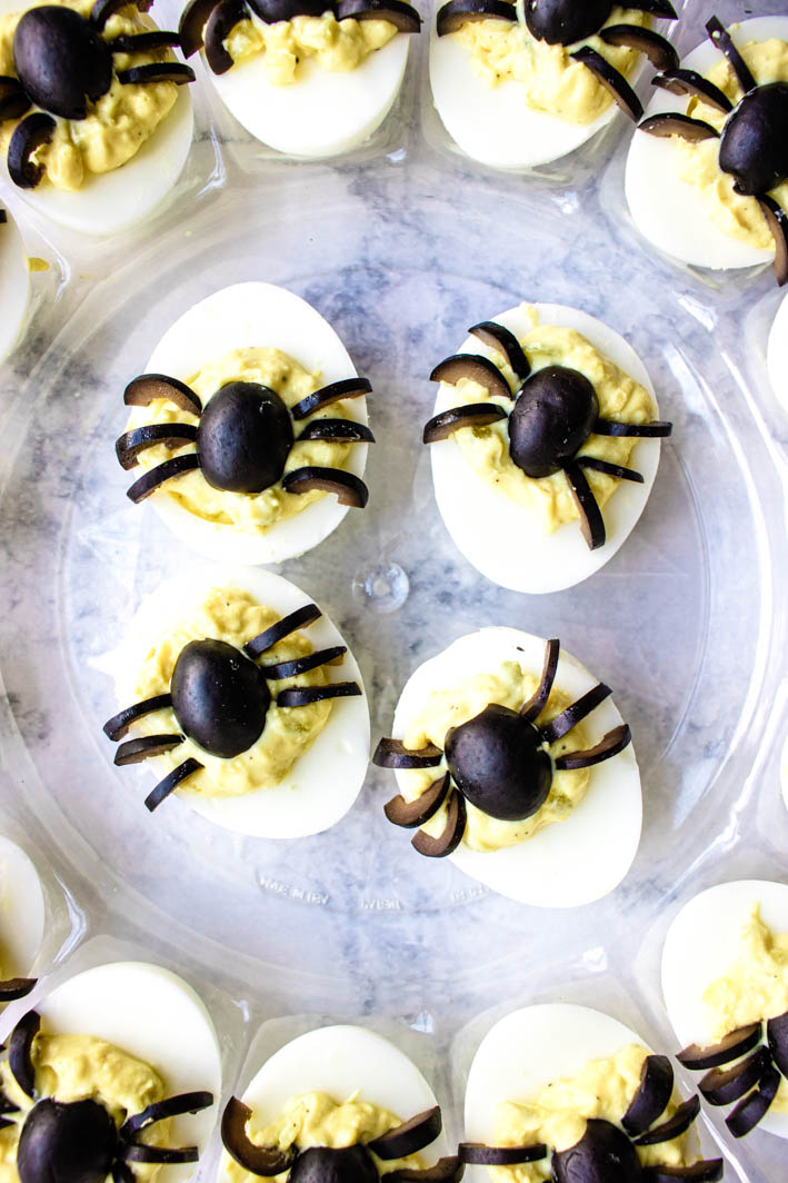 Spider Deviled Eggs with Olive Legs