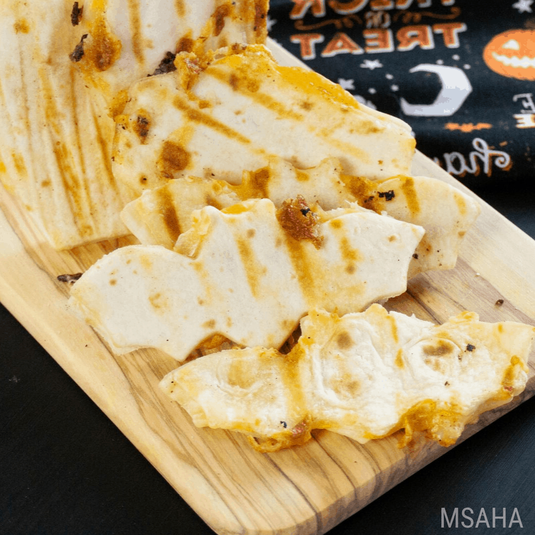 Black Bean and Orange Cheddar Quesadilla Bats