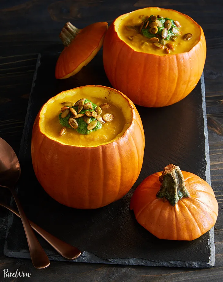 Pumpkin Soup Served in Mini Pumpkin Bowls