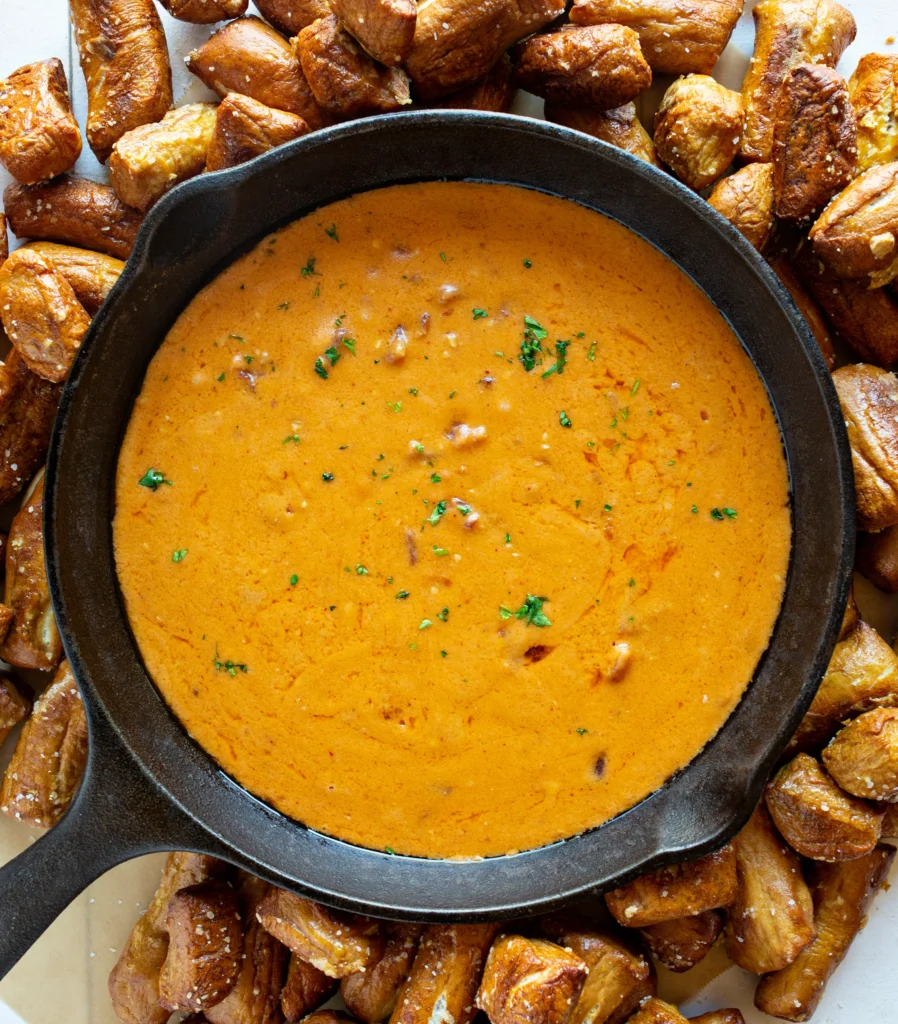 This grown-up dip brings together sharp cheddar cheese with a splash of beer for a rich, smooth consistency that’s perfect for game day or adult Halloween parties. The natural orange color fits the Halloween theme beautifully, and the flavor is bold and satisfying. It’s best served warm and stays creamy in a slow cooker throughout your party. Pairs wonderfully with soft pretzels, tortilla chips, or crusty bread – and it’s guaranteed to be a hit with the beer-loving crowd.