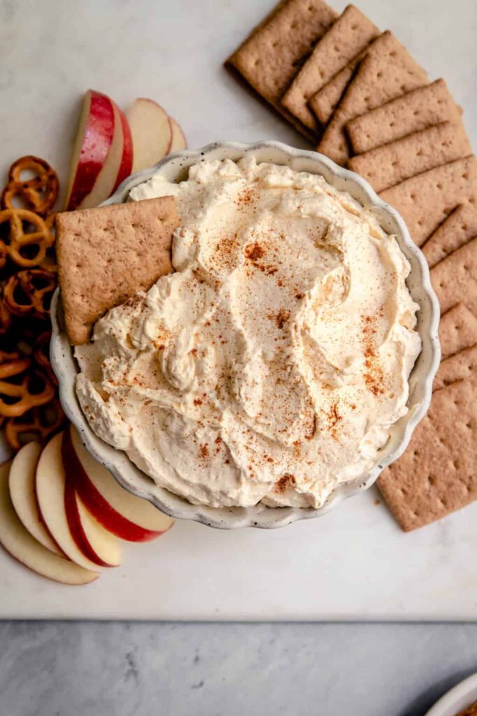 This sweet dip tastes like fall in a bowl, with all the warm spices of pumpkin pie in a creamy, scoopable form. It’s ridiculously easy to make – just mix pumpkin puree with cream cheese and your favorite pumpkin spice blend. The texture is smooth and light, making it perfect for dipping apple slices, graham crackers, or gingersnap cookies. It can be made hours ahead and actually tastes better after the flavors have time to blend together in the fridge.