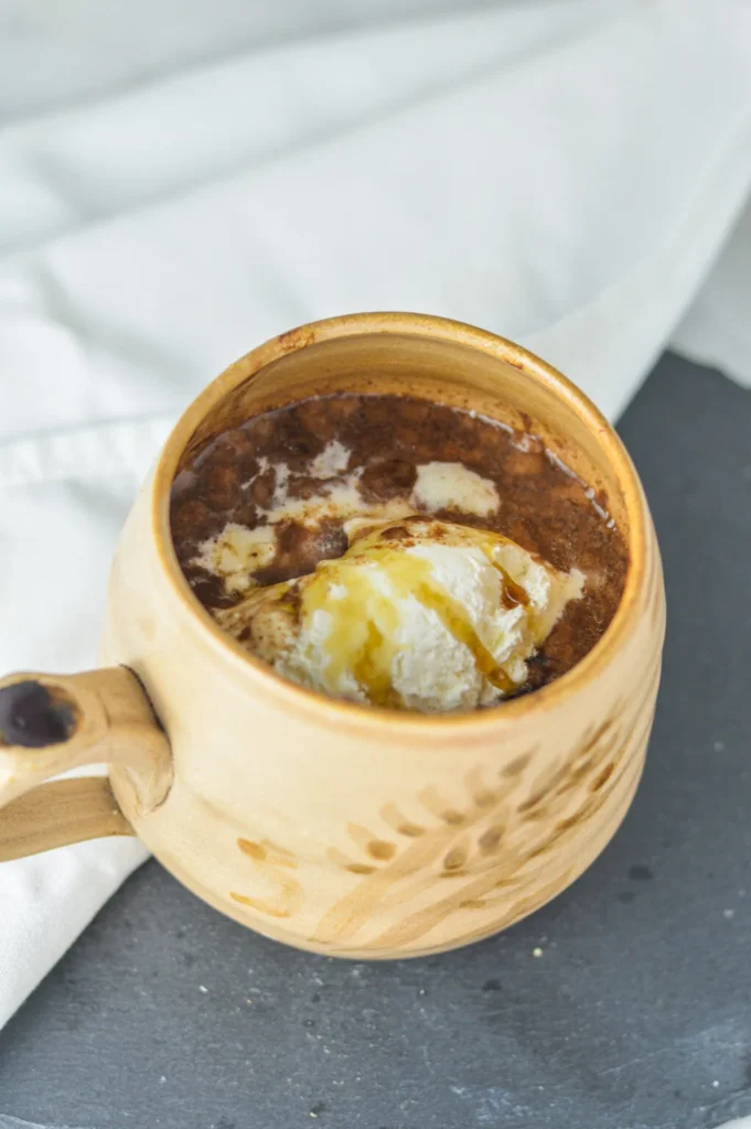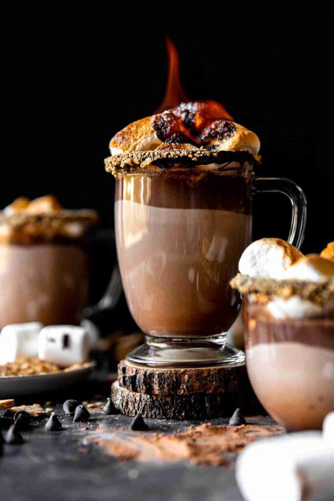 The taste is nostalgic and comforting, bringing back memories of summer campfires and childhood treats. Toasted marshmallows on top add visual appeal and extra s’mores authenticity.