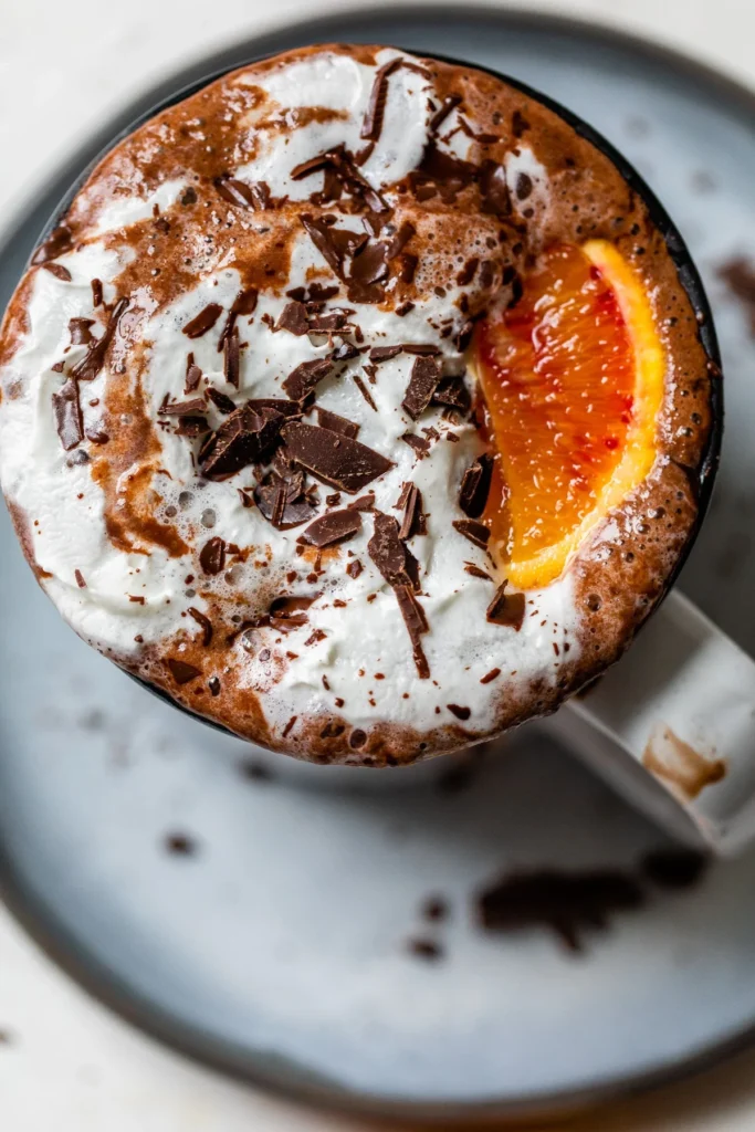 The classic combination of rich chocolate and bright orange creates a sophisticated drink that’s been beloved for generations. The orange cuts through the chocolate’s richness while adding citrusy brightness that makes everything taste more vibrant. This is incredibly easy to make using orange zest or extract added to your favorite hot chocolate recipe.