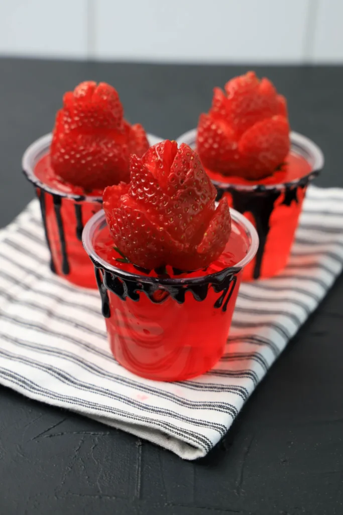 The deep red looks appropriately sinister, while the fruit flavors are sweet and appealing. These are fantastic for people who love the visual drama but want something that actually tastes good. They’re straightforward to make using standard jello shot techniques. The plastic spiders can be removed before eating, or brave souls can eat around them for extra Halloween street cred.