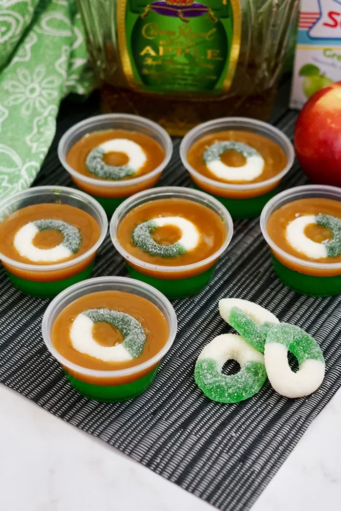 Sweet caramel and tart apple flavors combine with smooth whiskey for shots that taste like liquid caramel apples. The combination is perfect for autumn celebrations and appeals to people who love classic fall flavors. These can be topped with actual caramel drizzle for extra indulgence and visual appeal. The whiskey adds warmth and depth that complements both the apple and caramel beautifully. They’re moderately easy to make and feel more sophisticated than typical fruity jello shots.