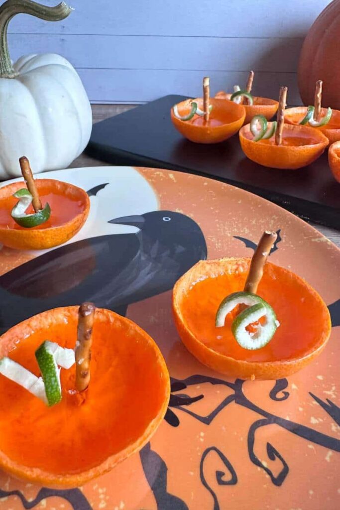 Delight party guests with adorable orange pumpkin jello shots that combine festive fun with grown-up flair. These creative treats use hollowed-out mini oranges as natural serving vessels, filled with orange-flavored gelatin mixed with vodka or rum for a boozy kick. The citrus shells create perfect pumpkin shapes when garnished with celery or pretzel stick “stems.” To make them, halve and hollow oranges, prepare spiked jello according to package directions, pour into orange halves, refrigerate until set, then slice into wedges. They’re Instagram-worthy, delicious, and add playful Halloween spirit to any adult gathering.