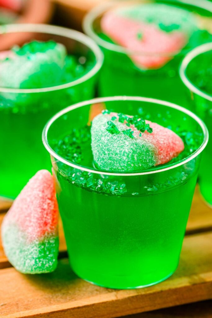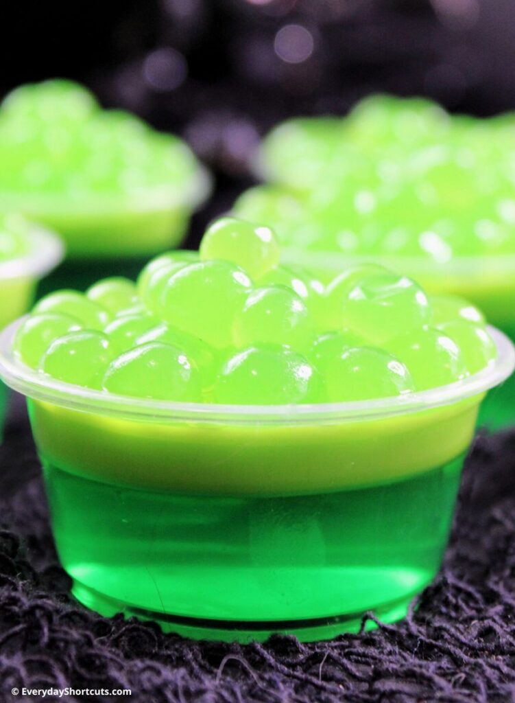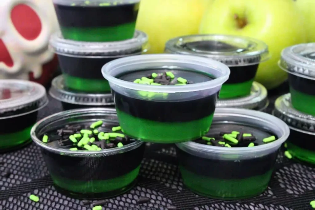 Bright green apple jello creates shots that look like liquid poison apples from fairy tales. The apple flavor is crisp and refreshing, reminiscent of green apple candy but more sophisticated. These can be served in small containers labeled “poison” for extra theatrical effect. The green color is perfect for Halloween themes, and the apple flavor appeals to almost everyone. They’re simple to make and can be enhanced with apple schnapps for extra apple intensity and smooth drinking.