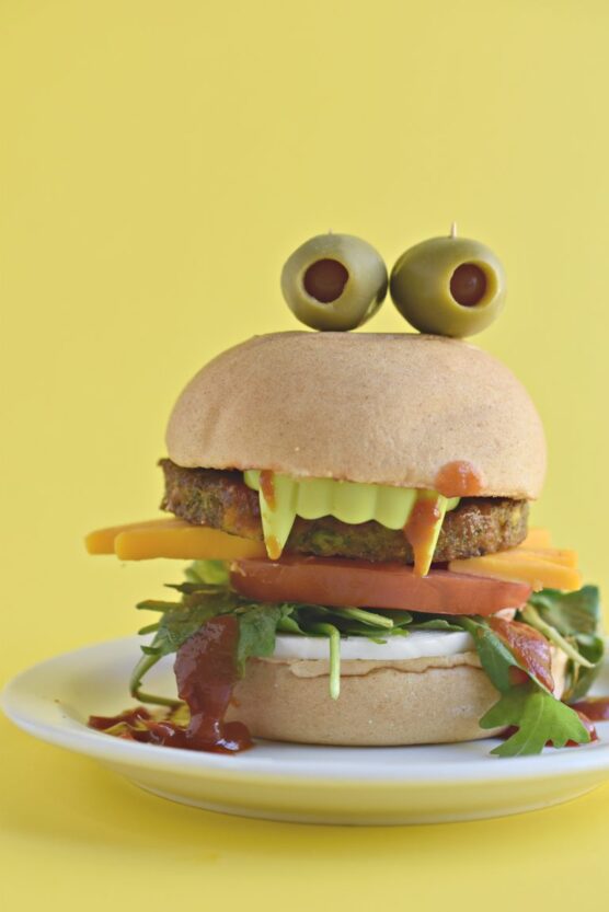 The familiar burger format ensures widespread appeal, while the plant-based protein satisfies both vegetarians and omnivores. Assembly is fun and interactive, making these perfect for parties where guests can create their own monster faces. Find the recipe here.