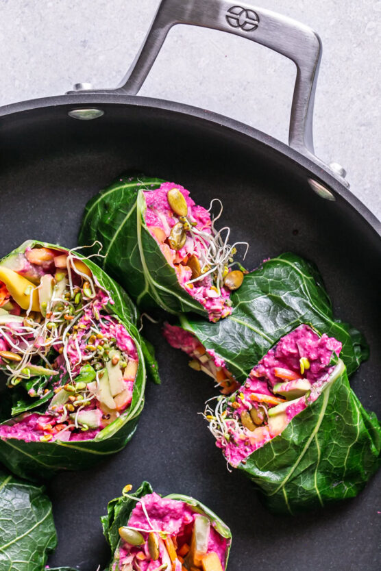 Fresh herbs, tomatoes, and cucumbers brighten the overall taste profile and provide satisfying textural variety. These healthy wraps prove that Halloween party food doesn’t have to be entirely indulgent.