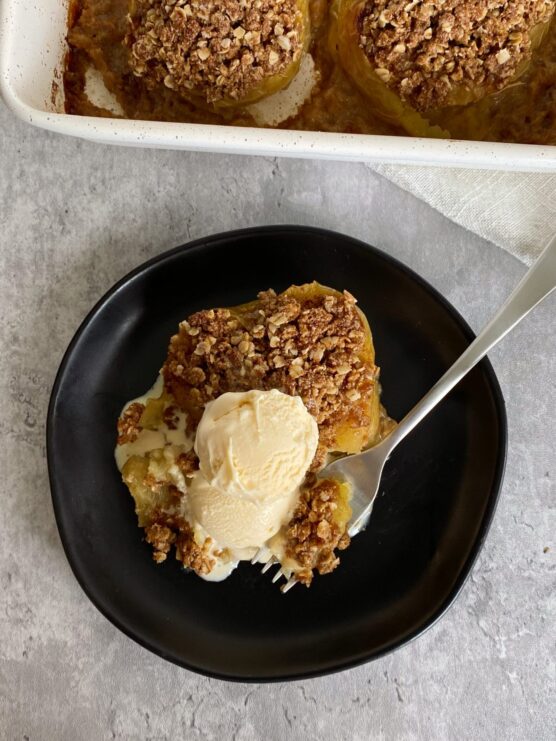 This is one of the easiest healthy desserts you can make – just slice, season, and bake. They’re beautiful served whole or sliced, perfect for impressing guests without spending hours in the kitchen. Serve warm with a small scoop of vanilla yogurt or cottage cheese.