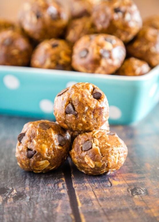 They’re incredibly easy to make in a food processor and require zero cooking skills. These are perfect for busy holiday mornings or pre-workout snacks. They keep well in the fridge or freezer, making them ideal for meal prepping ahead of the holiday rush.