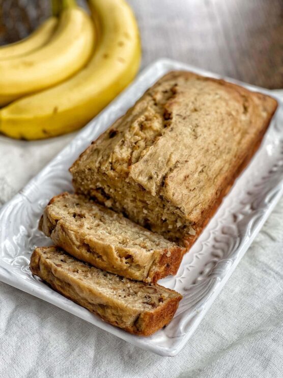 The texture is moist and tender, tasting like traditional banana bread without the guilt. It’s straightforward to make and perfect for using up overripe bananas that would otherwise go to waste. This works beautifully for breakfast, snacks, or dessert throughout the holiday season.