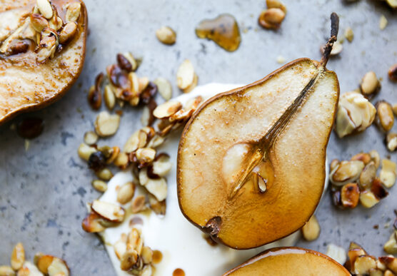 Maple Roasted Pears with Yogurt and Maple-Nut Clusters
