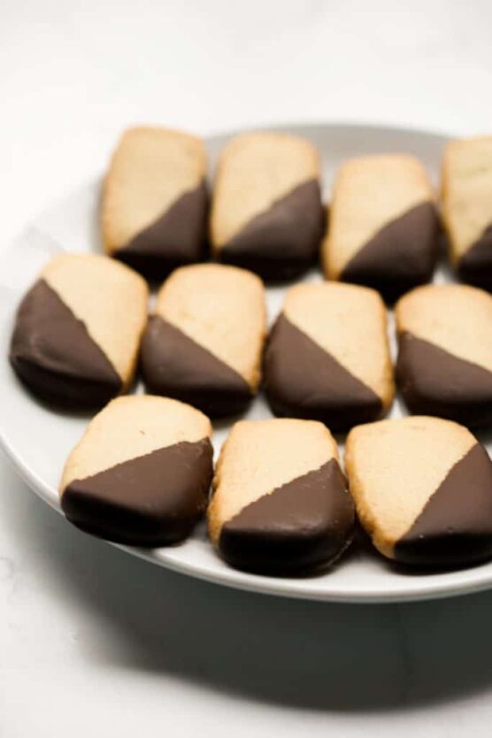 Buttery Scottish shortbread becomes extra special when half-dipped in rich chocolate. The simplicity of the cookie lets quality ingredients really shine through. Dipping them is quick and gives them a professional, polished look. The chocolate adds richness without overwhelming the delicate shortbread flavor.
