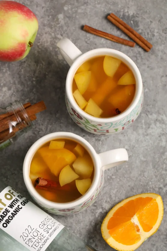 This lighter alternative uses white wine and fresh pears for a more delicate, elegant take on mulled wine. The white wine base makes it less heavy and tannic than red versions, while pears add subtle sweetness and beautiful presentation. It’s perfect for people who prefer white wine or want something that won’t stain if spilled at parties.
