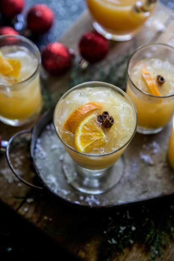 Pineapple, coconut, and mango create a punch that brings tropical sunshine to your winter celebration. The flavors are bright, sweet, and refreshing – a fun departure from traditional holiday flavors. It’s incredibly easy to make using fruit juices and coconut cream, with no complicated steps.
