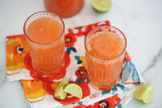The bright colors look beautiful in clear glasses or punch bowls, especially with frozen fruit ice cubes. It’s light enough to enjoy throughout an entire party without feeling too full.