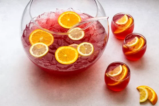 Warm spices like cinnamon, ginger, and nutmeg transform apple cider into a punch that tastes like drinking gingerbread cookies. The spices create that cozy, comforting flavor that’s perfect for holiday gatherings. This is best served warm, making it ideal for cold weather parties or outdoor events.
