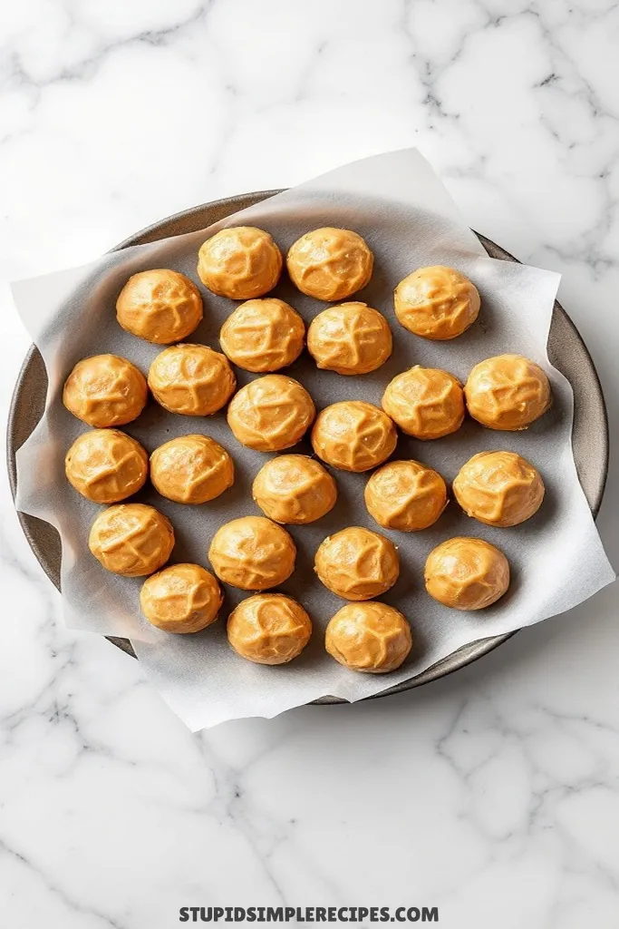 10. Scoop about 2 tablespoons of chilled cookie dough and flatten it in your palm. Place a frozen peanut butter ball in the center and wrap the dough around it, sealing completely. Roll into a ball and place on your prepared baking sheet. Leave about 2 inches between cookies – they will spread.