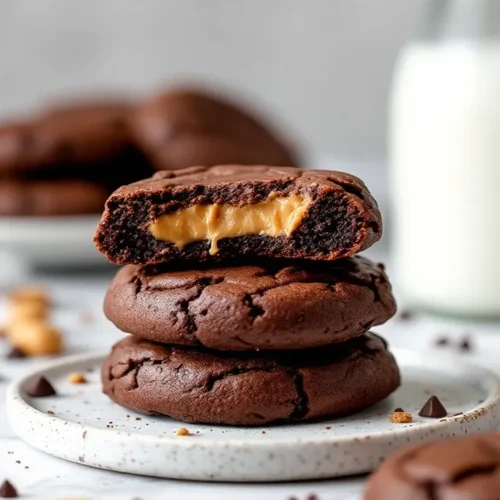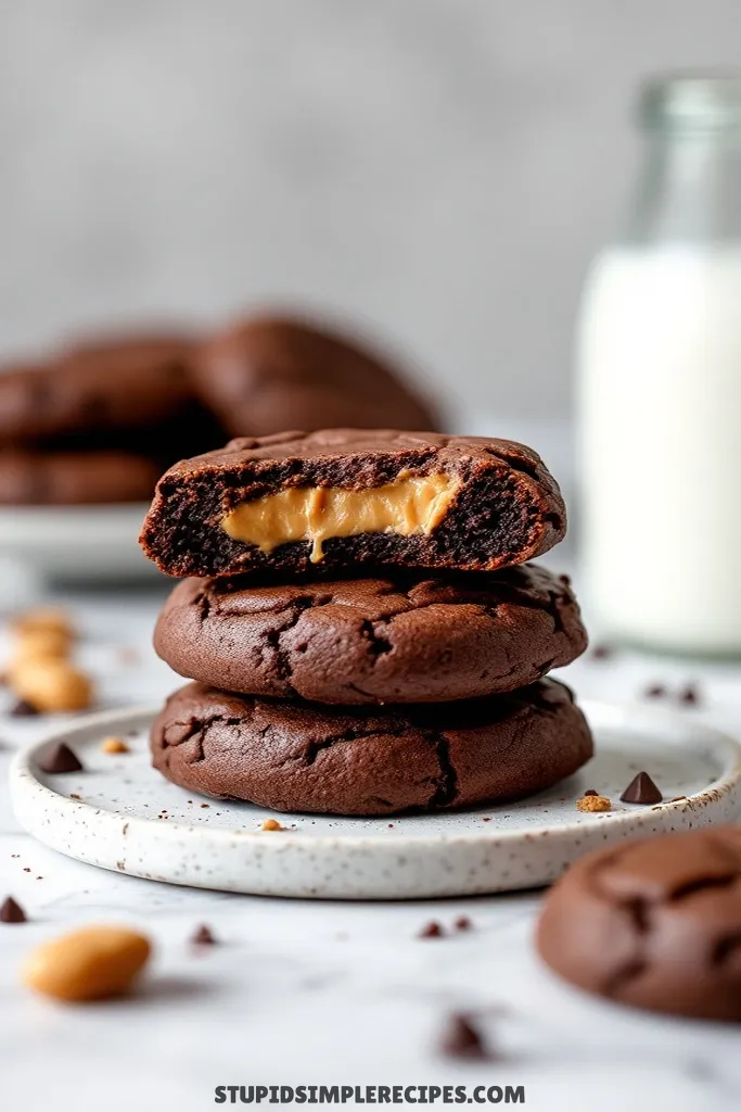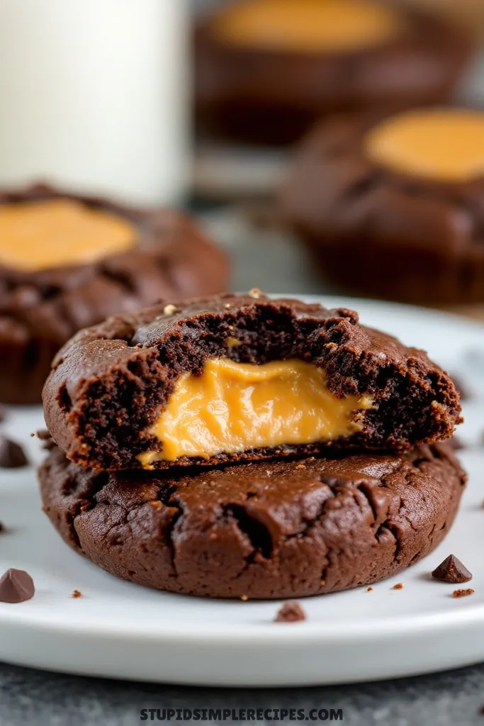 These peanut butter filled brownie cookies hit that perfect spot between showing off and actually being doable. They look fancy thanks to the peanut butter center, but they’re basically just chocolate cookies with a surprise inside.