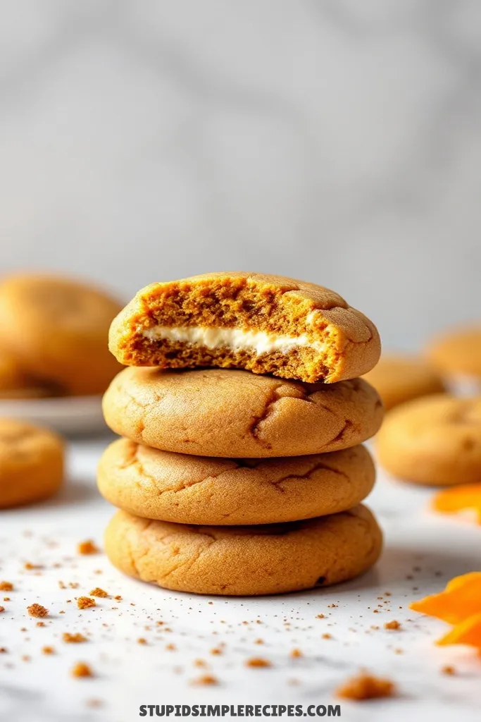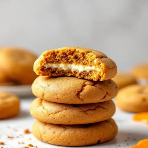 Soft pumpkin-spiced cookies filled with a rich, creamy cheesecake center, combining warm fall flavors in every bite. The perfect cozy treat for pumpkin lovers!