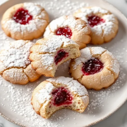 The outside gets slightly crisp while the middle stays soft and chewy. I make these when I want something that feels fancier than regular sugar cookies but doesn’t require much extra work. They’re perfect for spring gatherings or Valentine’s Day, and they hold up well for a few days in an airtight container. The bright berry flavor makes them stand out on a cookie plate.