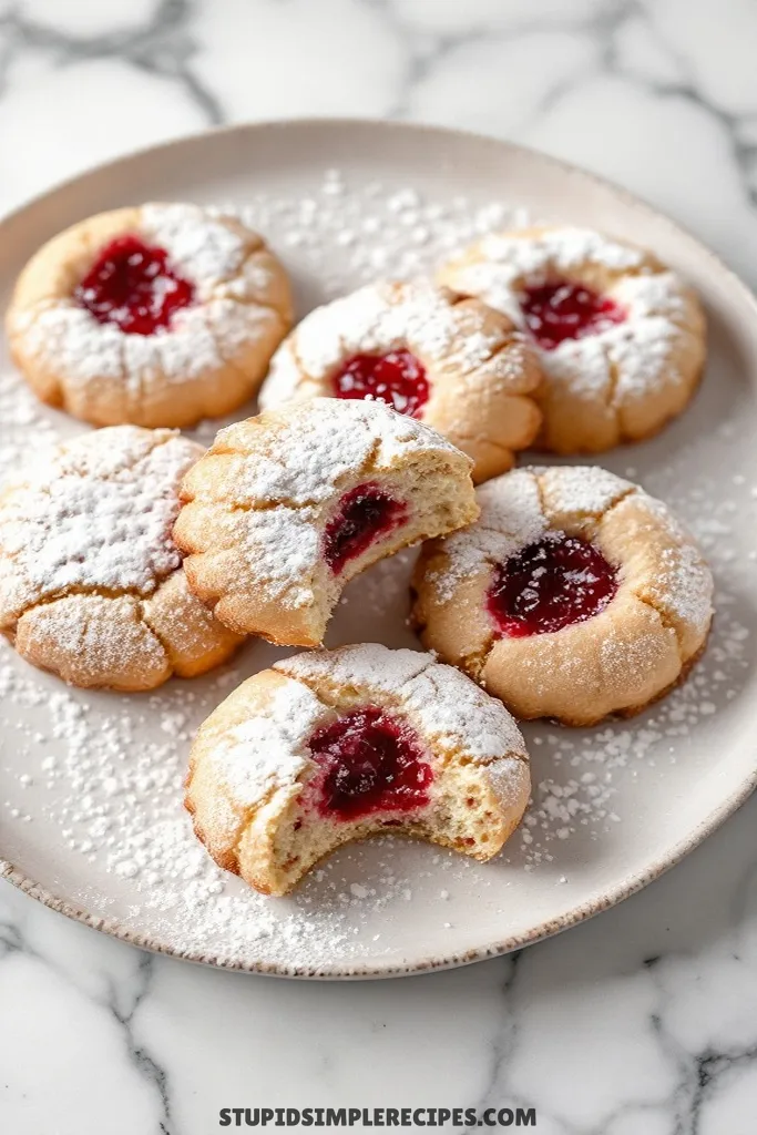- Once they’re completely cool, dust them with powdered sugar using a fine-mesh sieve. The contrast of the white sugar against the red jam makes them look extra pretty!