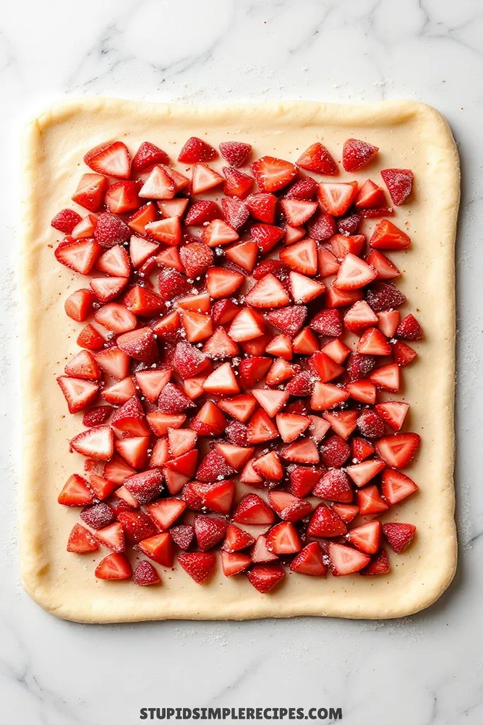 - While the dough rises, mix your diced strawberries with sugar and cornstarch in a bowl. Let them sit for about 15 minutes – you’ll see juice starting to come out of the berries. This is good! The cornstarch will help thicken those juices when we bake.