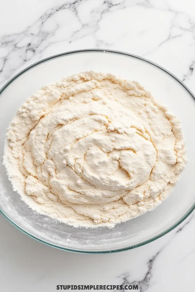 2. In a large bowl, whisk together 3 cups of the flour (we’ll save some for later), sugar, yeast, and salt. Make a well in the center – this helps everything mix evenly.