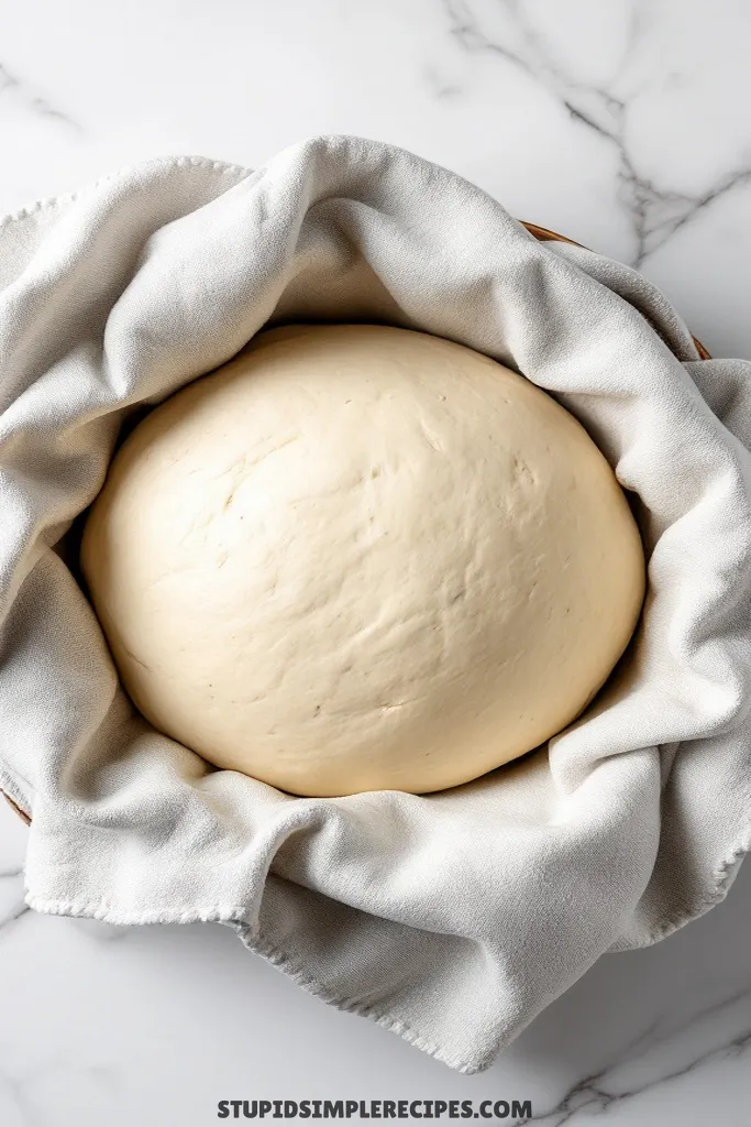 - Place the dough in a lightly greased bowl, cover with a damp towel, and let rise in a warm spot until doubled in size, about 1 hour. I like to turn my oven on for just a minute, then turn it off and use that slightly warm space.